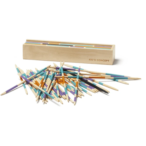 - Ein klassisches Mikado-Spiel in drei leuchtenden Farben; Flieder, Blau und Mango
