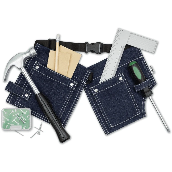 Ein Profi-Werkzeuggürtel mit Spielzeugwerkzeugen für alle kleinen Schreiner!