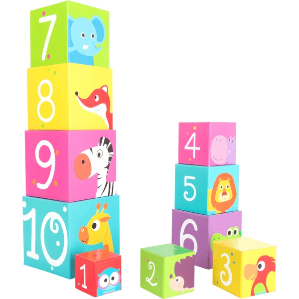 außerdem auf spielerische Art und Weise das Zählen schulen. Beim Stapeln